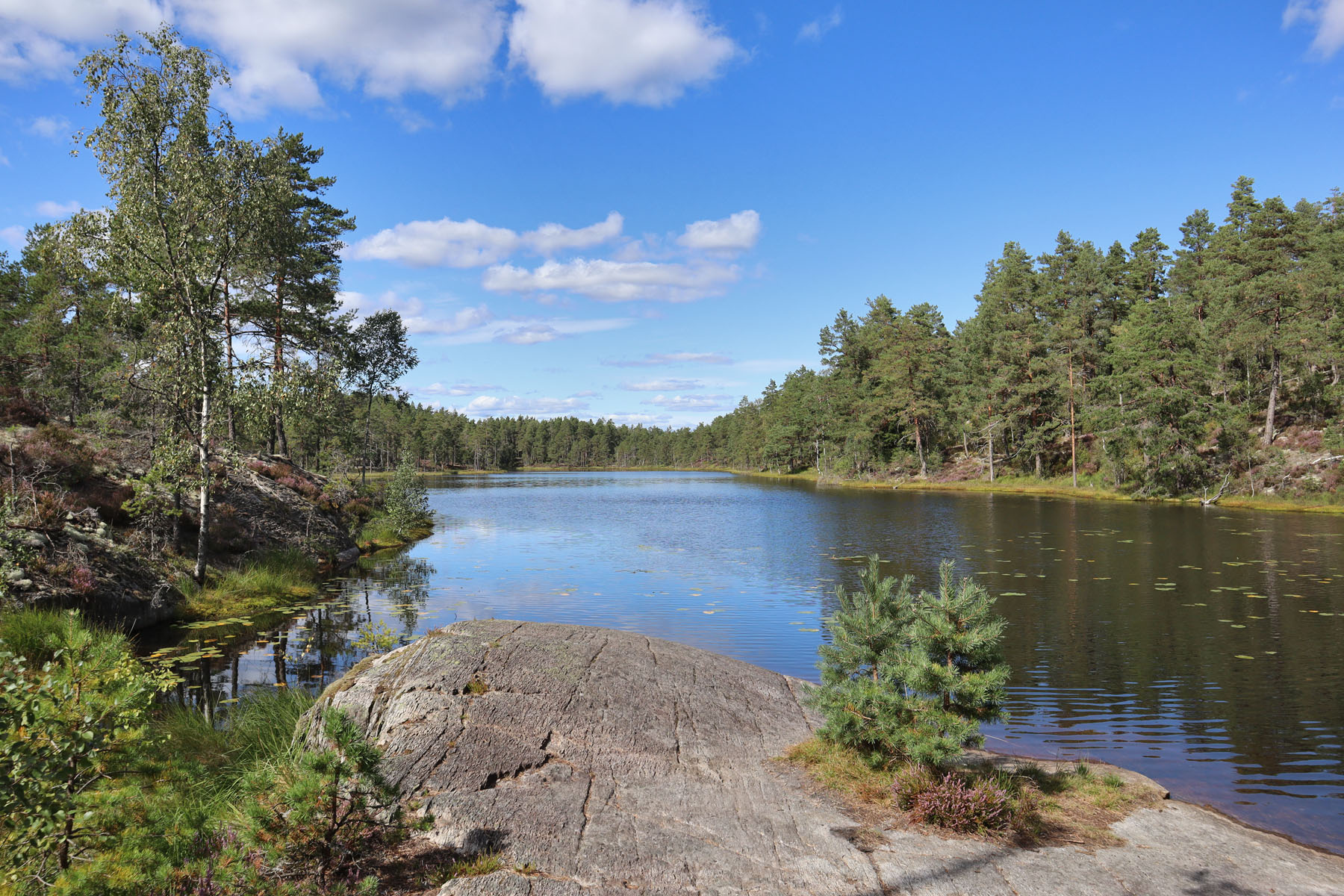 Nimmt man die Route von Ed am Westufer des Stora Le Richtung norwegische Grenze, so gelangt man nach einer Weile absoluter Einsamkeit zum Nationalpark Tresticklan, der zu den größten Südschwedens zählt. Der abgelegene Urwald wird durch einen Rundweg erschlossen, der über Stock und Stein zwischen vielen kleinen Waldseen hindurchführt. Der größte unter ihnen ist der namensgebende Stora Tresticklan. Ein Abzweig des Rundwegs führt unmittelbar zur norwegischen Grenze. Wie in schwedischen Nationalparks üblich, ist die Infrastruktur mit Parkplatz, Barrierefreiheit im Nahbereich und Informationsmaterial vorbildlich. Wer nicht zu vielen Wanderern auf der mehrstündigen Tour begegnen möchte, sollte die Hauptsaison im Hochsommer meiden. Dann kann man die unberührte Risstallandschaft mit der Tierwelt mit Elch, Luchs und Wolf teilen, wobei letztere naturgemäß fast nie zu Gesicht zu bekommen sind. Unter den Nationalparks Südschwedens hat uns lediglich der Tiveden mehr in den Bann gezogen.