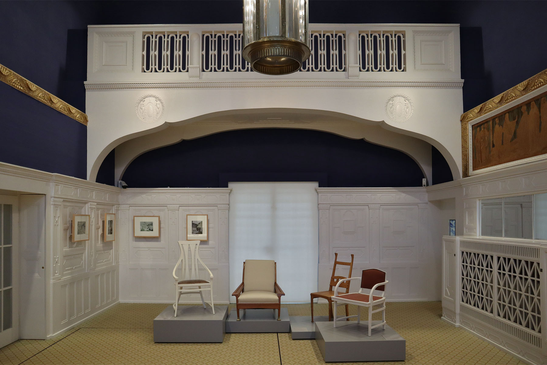 Das Museum der Mathildenhöhe wurde im ehemaligen Atelier, dem Ernst-Ludwig-Haus, eingerichtet. Die Sammlungspräsentation Raumkunst – Made in Darmstadt erhielt dadurch einen würdigen Rahmen. Sie ist aufgeteilt in drei große Raumeinheiten: das Foyer und die beiden davon abgehenden Flügel. Inhaltlich stehen die vier großen Darmstädter Großausstellungen mit ihren Raumkunstwerken im Fokus. Ein tieferes Verständnis für die Objektschau erhält der Besucher über die digitalen Medientische und den Audioguide, der bequem über das Smartphone aufgerufen werden kann. Im Foyer empfangen die Besucher Teile des Interieurs aus der Halle des Großen Hauses Glückert. Der Möbelfabrikant Julius Glückert hatte sich von Olbrich einen Empfangs- und Festsaal mit Empore und einer Vertäfelung aus weiß lackiertem Pappelholz entwerfen lassen. Die Halle präsentierte sich in allen Häusern der Mathildenhöhe als zentraler Ort des Lebens und Arbeitens.