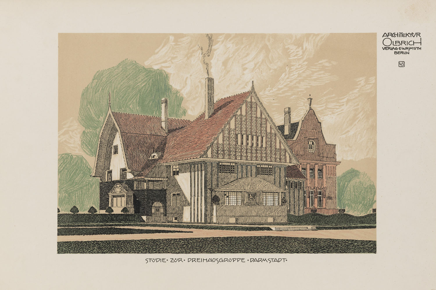 Bis zur ersten Ausstellung Ein Dokument Deutscher Kunst im Jahre 1901 entstanden die individuellen Wohnhäuser der Künstler, die mit Ausnahme des Hauses Behrens – dieser wollte sein Haus selbst planen – allesamt von Olbrich konzipiert wurden. Es waren das Haus Christiansen, das Haus Olbrich, Großes und Kleines Haus Glückert, das Haus Habich, das Haus Keller sowie das Haus Deiters. Entsprechend des gesamtheitlichen Ansatzes des Jugendstils beinhaltete dies auch die Innenausstattung. Olbrich kam aus Wien und war dort eines der Gründungsmitglieder der Wiener Secession, einer der bedeutendsten europäischen Vereinigungen bildender Künstler des Jugendstils.