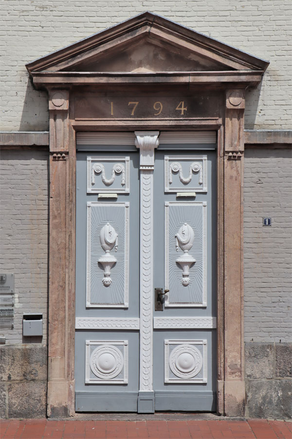 Etwas abseits der Platzanlage treffen wir auf den ungewöhnlichen Baukomplex des Grauen Klosters, der aus dem ehemaligen, 1234 gegründeten Franziskanerkloster hervorging. Auf dem Grundstück wird archäologischen Untersuchungen zufolge bereits in der Mitte des 11. Jahrhunderts ein dänischer Königshof vermutet. Nach der Reformation verfielen die Klosterbauten und wurden zeitweise als städtisches Armenhaus genutzt, die dazugehörige Kirche zum Rathaus umfunktioniert. Letzteres wurde wegen Baufälligkeit 1793 abgerissen und durch einen klassizistischen Neubau ersetzt, der nun in einem reizvollen Kontrast zu den erhaltenen mittelalterlichen Klosterbauten aus Backstein steht.