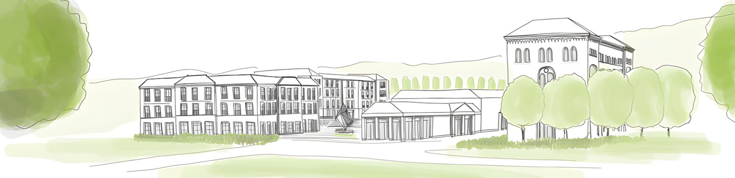 Weniger durchdacht erscheint mir die Gestaltung der Veranstaltungshalle in der Mitte der Skizze. Die Anklänge an griechische Tempelformen bzw. klassizistische Fassadengestaltungen wirken zu aufgesetzt. Die Anlage lässt an Kurhäuser des frühen 19. Jahrhunderts wie in Baden-Baden oder Heiligendamm denken. Hier sehe ich noch weiteres Potenzial hinsichtlich einer ortstypischen Bebauung.